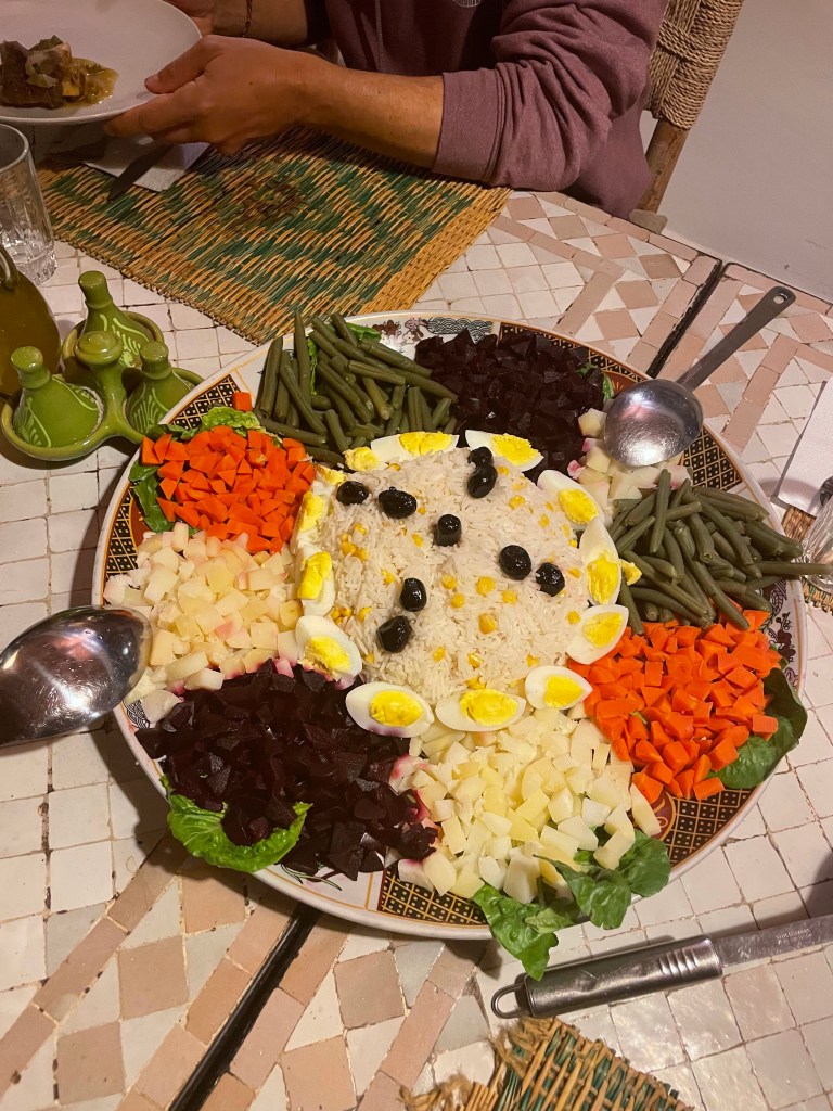 Instead of writing about delicious and amazing the food is (which it is!), I wanna talk about how breathtaking each dish is. You simply look at a tajine or couscous and admire its beauty, then when you try it. Unreal. There are so many traditional dishes and foods that I’m so lucky to taste every single day. I’m starting to notice how different cultures have different foods but I feel like so many cultures also have many similarities… (more to come on that).